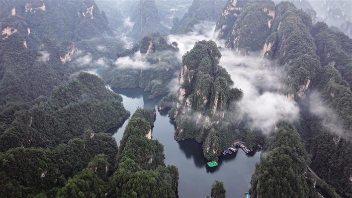 春分过后,张家界宝峰湖景区春光旖旎,雾绕山峦,风拂湖面,空气清新,吸引海内外游客纷至沓来。游客们徜徉于奇山异水间,赏杜鹃、观飞瀑、听山歌,尽享春日出游的惬意与美好。